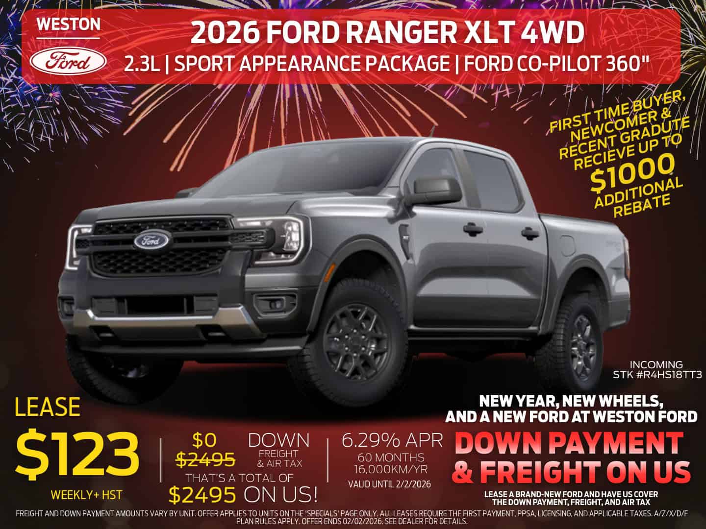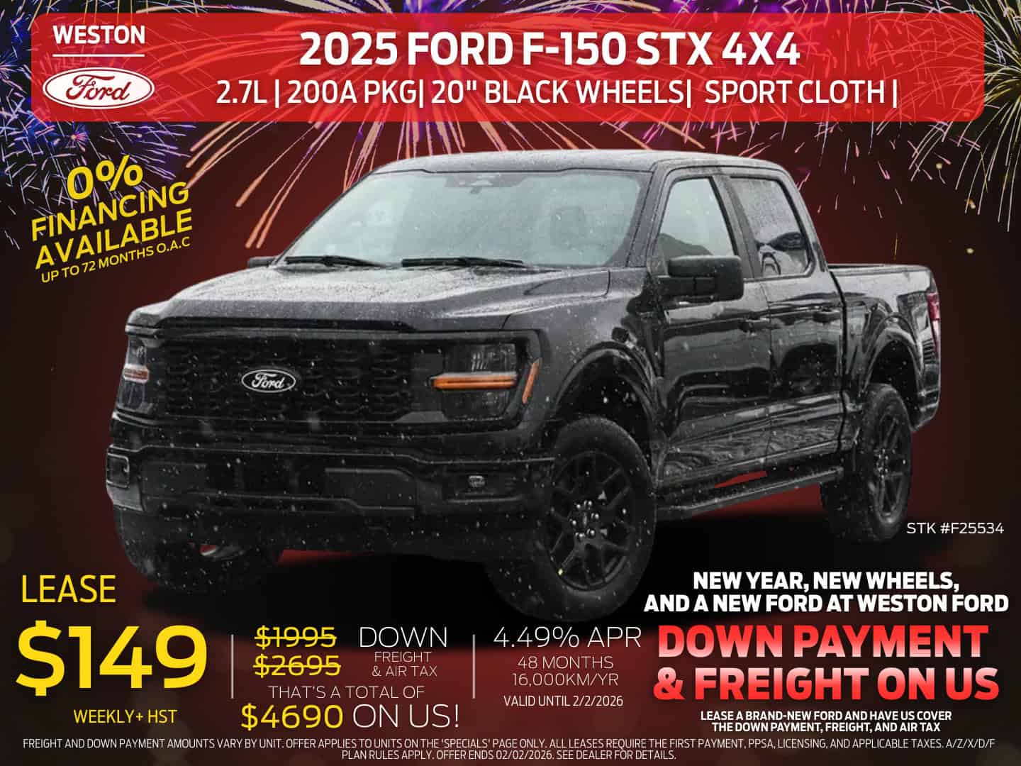 Lease $159 weekly + HST | 48 months | 4.49% APR oac | 16,000km/yr | $0 down & No Freight & Air Tax