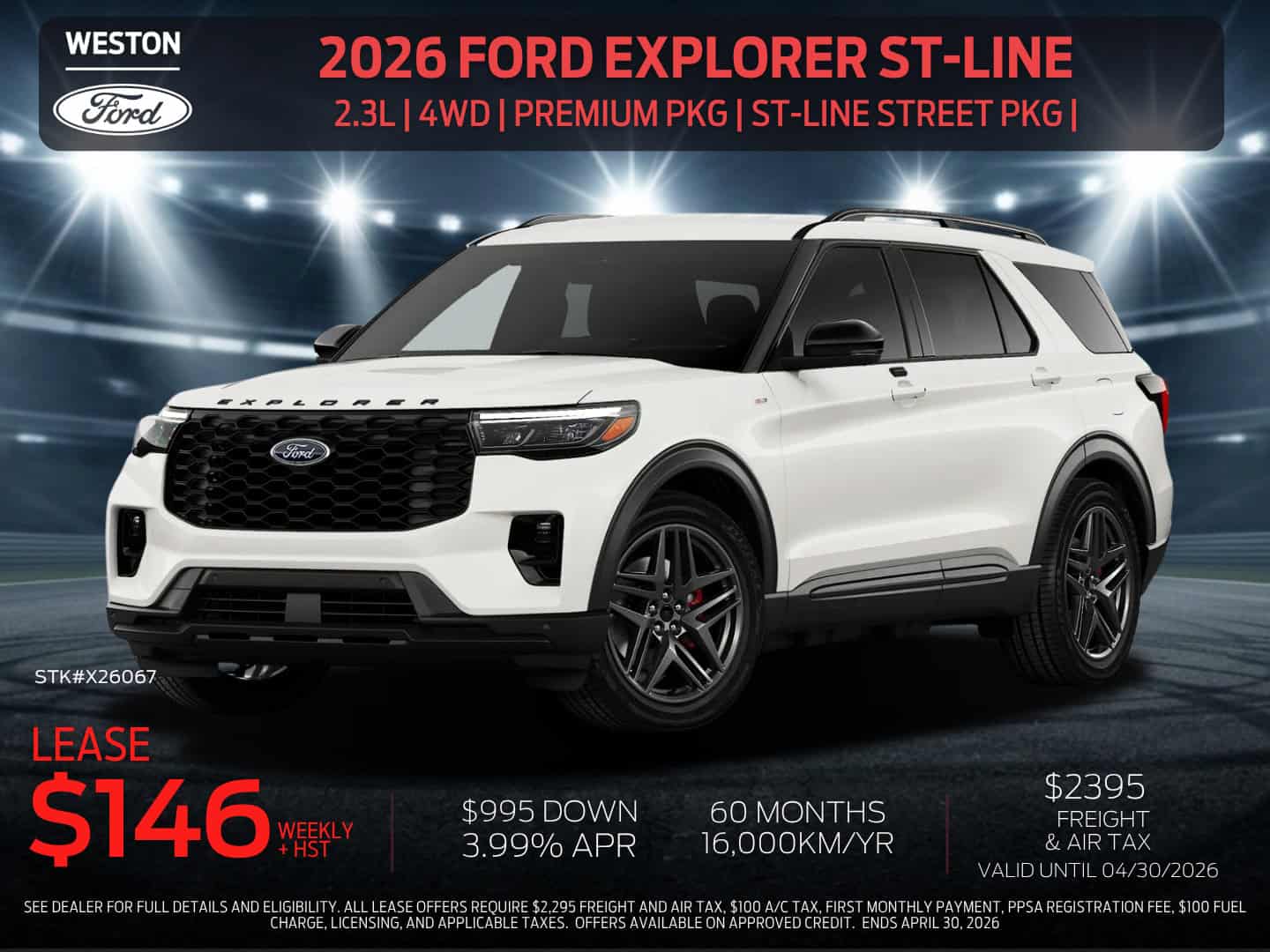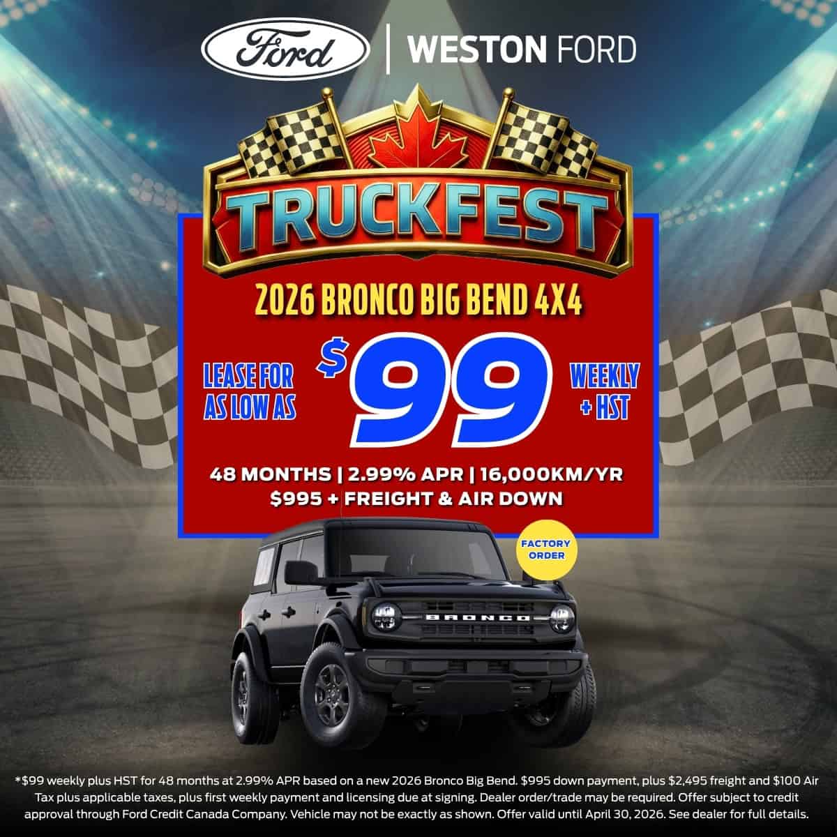 Make the most of the exciting opportunities that 2026 has in store, by embarking on your Ford journey with us. Whether you’re captivated by the allure of Ford EVs or drawn to the latest 2025 and 2026models, our showroom awaits your exploration. Visit Weston Ford Toronto today and discover how we can elevate your driving experience through exceptional vehicles, exclusive offers, and a commitment to your utmost satisfaction. Your perfect Ford vehicle and a world of savings are just a visit away.